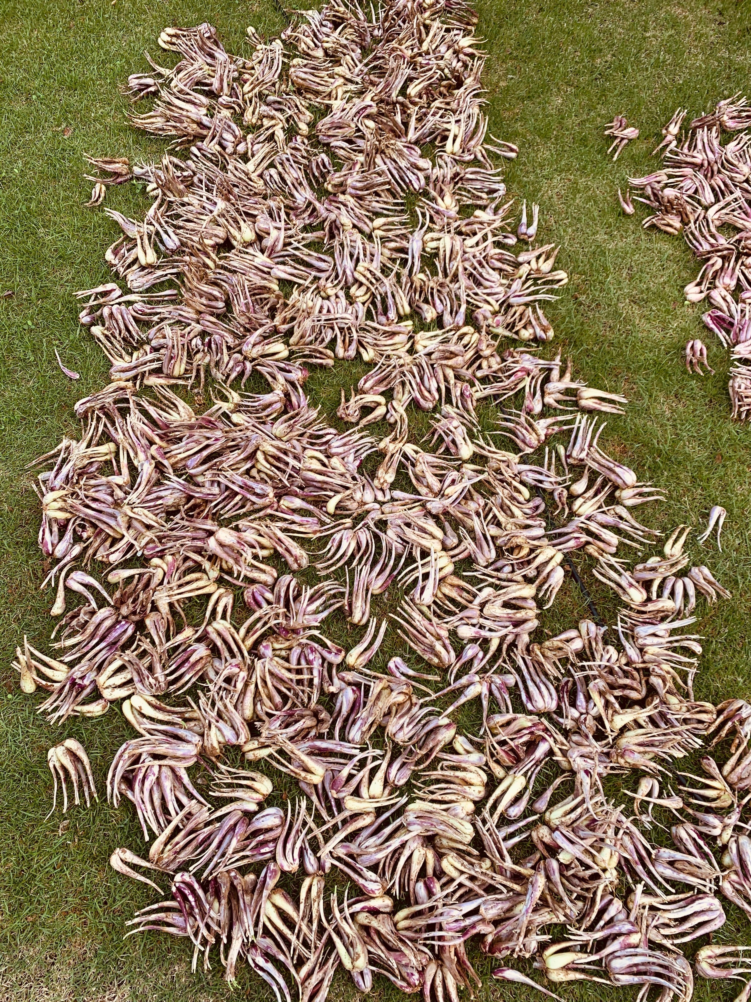 伊江島では、梅雨が明けた後に来年の種用として収穫します。天日干しを丁寧にして、手作業で良い種を選別します。